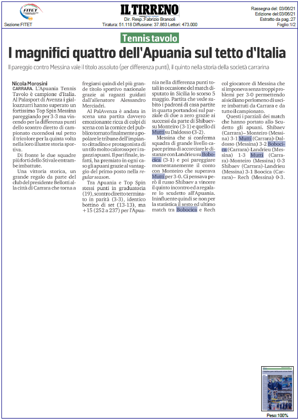 Partiamo dalla locandina dell'edicola che finalmente riporta il Tennistavolo come prima notizia.